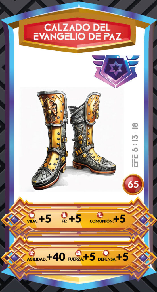 El calzado del evangelio de la paz es una parte esencial de la armadura espiritual descrita en Efesios 6:15. Este calzado simboliza la preparación y la estabilidad que provienen de la proclamación del evangelio y de la paz que Dios da a sus hijos. A continuación, se presentan las características del calzado del evangelio de paz: