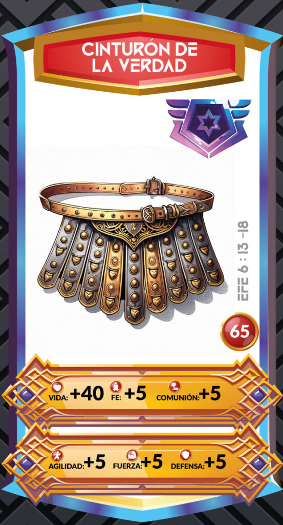 El cinturón proporcionaba seguridad y mantenía todo en su lugar, permitiendo al soldado moverse con libertad y sin temor a que su armadura se desajustara. La verdad de Dios proporciona una base sólida y estable, evitando que el creyente sea sacudido por las mentiras del enemigo (Juan 8:32).