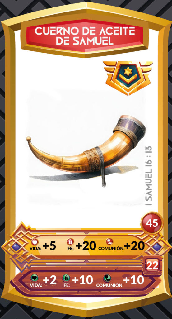 - El cuerno de aceite de Samuel nos recuerda que Dios llama y elige a individuos para roles específicos en Su reino. Cada creyente tiene un llamado único y debe buscar discernir y cumplir ese llamado bajo la guía del Espíritu Santo (Efesios 4:1-4).