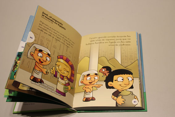 La Creación, la caída, la vida de Noé, Abraham, Isaac, Jacob, Ester, Rut y por supuesto el nacimiento, muerte y resurrección de Jesús, llegando hasta el apóstol Pablo.