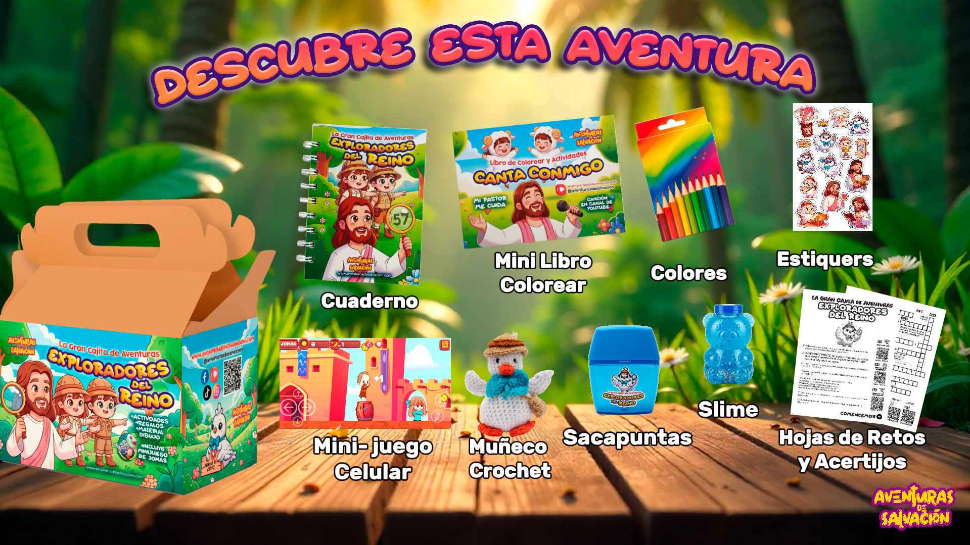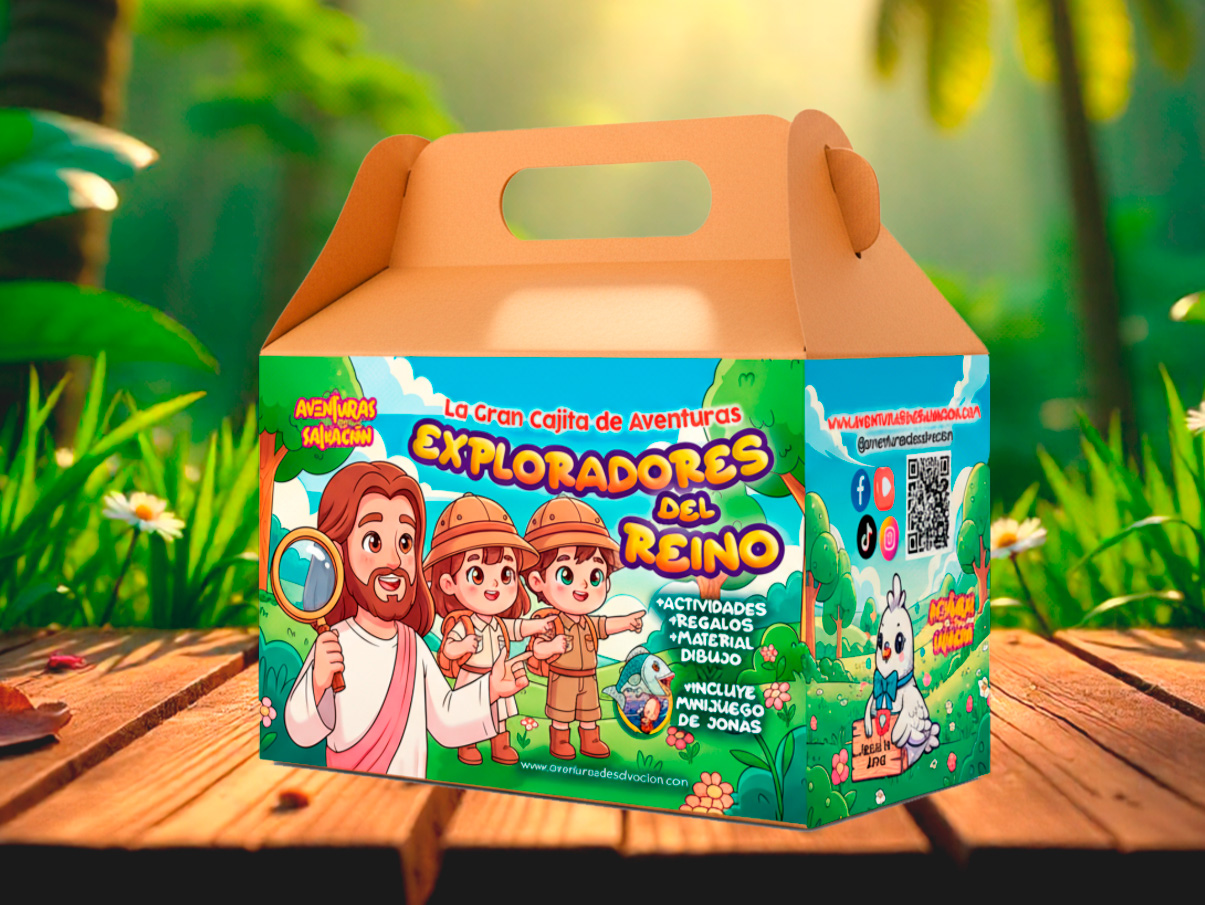 Cada detalle ha sido diseñado para vivir una experiencia única, donde la diversión se mezcla con la fe, la creatividad y la imaginación. 🌟 👧🧒 ¡Ideal para niños curiosos, creativos y listos para descubrir los tesoros del Reino! 🚀 Hazte con tu cajita y comienza la aventura hoy mismo.